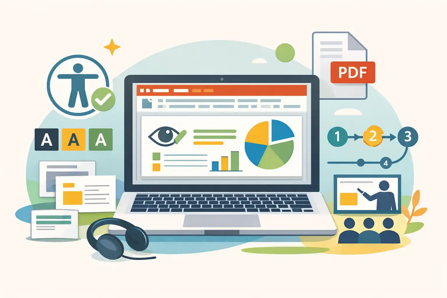 Un PowerPoint accessible est une présentation structurée avec des gabarits cohérents, des contrastes suffisants, un ordre de lecture logique et un export PDF balisé permettant une lecture correcte par les technologies d’assistance.
